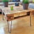 Dieser Couchtisch aus Paletten-Holz mit Ablage (optional) steht auf vier schwarzen Hairpin Legs.
